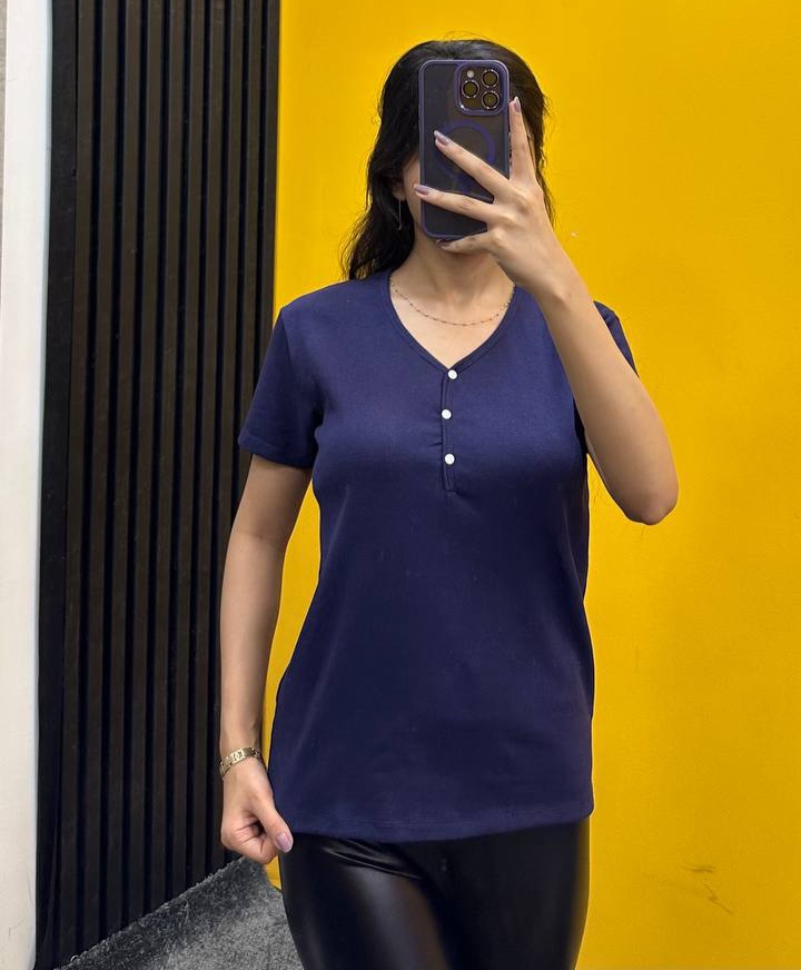 تیشرت پنبه کبریتی/دکمه نما